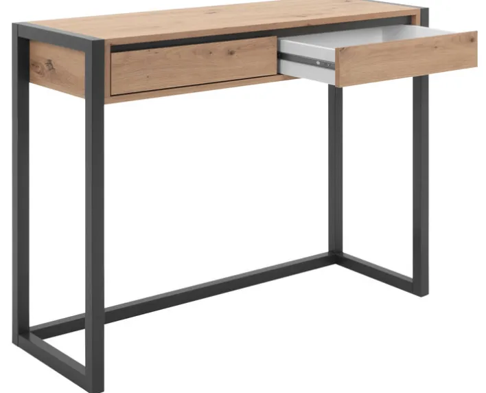 In den beiden nebeneinander angeordneten Schubladen der Konsole DENVER lassen sich hübsche Platzdeckchen oder dekorative Kleinigkeiten aufbewahren. Auch elektronische Geräte, gesammelte Briefe oder das Tagebuch sind hier gut aufgehoben. Auf der hübschen Tischplatte im Farbton Artisan Eiche lassen sich Vasen oder Topfpflanzen, Kunstgegenstände oder geschmackvolle Leuchter liebevoll arrangieren.