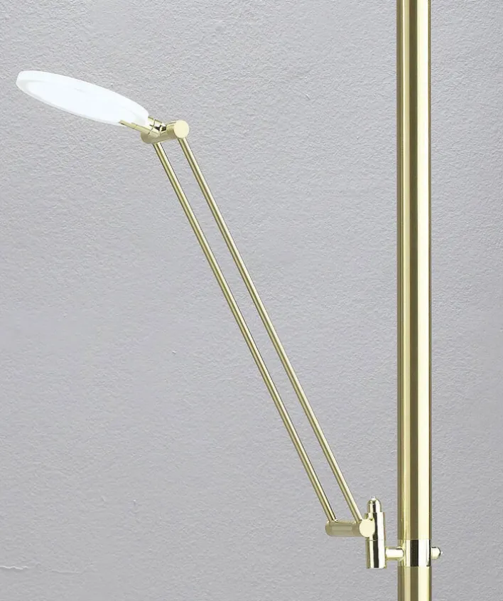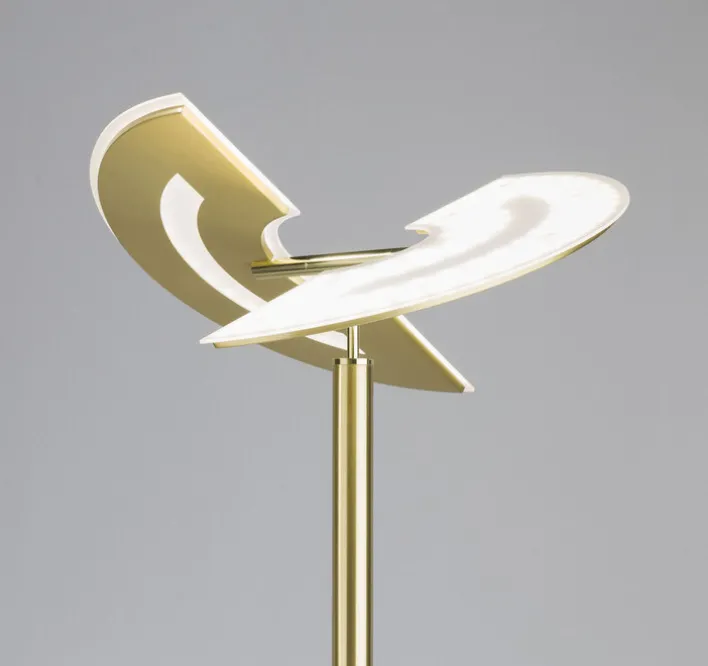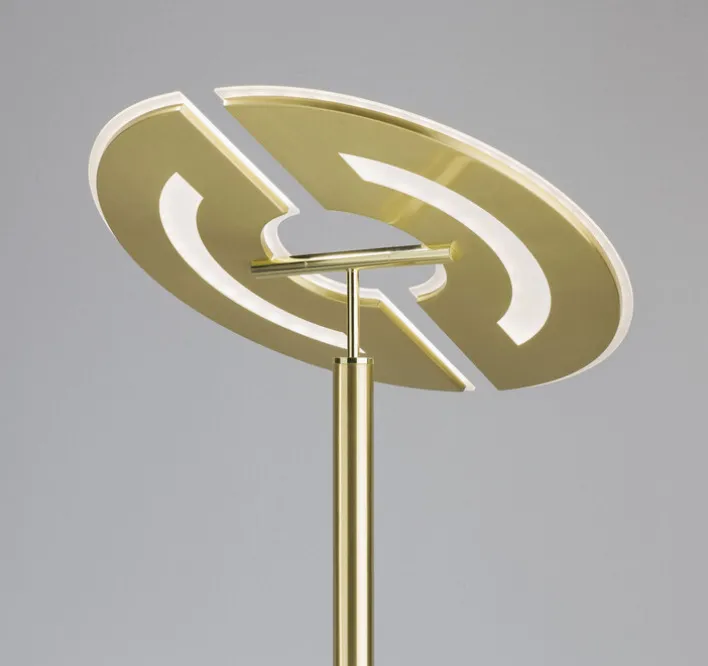 Die Stehleuchte MEMPHIS vereint Funktionalität und modernes Design in einem eleganten Messingfinish. Mit einem Durchmesser von 44 cm und einer Höhe von 182 cm fügt sich der Deckenfluter harmonisch in verschiedene Wohnräume ein. Die Leuchte besteht aus robustem Metall und Kunststoff, wobei Eisen als Hauptmetallart verwendet wird. Die Hauptfarbe Messing verleiht der Lampe einen zeitlosen und edlen Look, der sich nahtlos in unterschiedliche Einrichtungsstile integrieren lässt. Ausgestattet mit zwei fest eingebauten LED-Brennstellen bietet die Leuchte eine maximale Lichtleistung von 5.000 Lumen bei einem Energieverbrauch von insgesamt 50 Watt. Die Lichtfarbe ist zwischen 3.000 und 6.500 Kelvin einstellbar, was eine flexible Anpassung an verschiedene Stimmungen und Bedürfnisse ermöglicht. Die Leuchte ist dimmbar und verfügt über eine CCT-Lichtfarbverstellung, was eine individuelle Lichtgestaltung unterstützt. Mit der Schutzklasse 2 und der Schutzart IP20 ist die Leuchte für den Innenbereich geeignet und bietet eine Brenndauer von bis zu 20.000 Stunden.