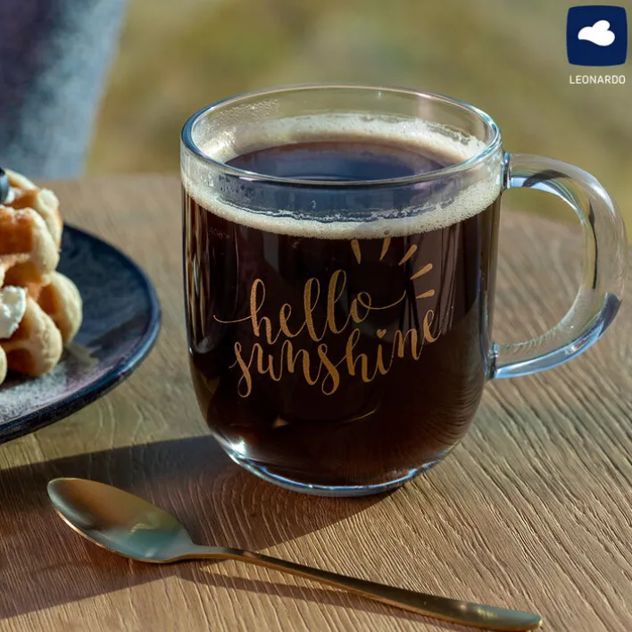 Die LEONARDO Tasse HELLO SUNSHINE sorgt mit ihrem knackigen Spruch auf der Vorderseite schon am frühen Morgen für gute Laune. Sie zeigt sich in einem Design in Transparent, Braun und Schwarz und bietet ein Fassungsvermögen von 400 ml.