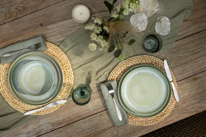 Erdige Farben sind eines der Merkmale des Boho-Stils, zu dem dieser Teller gerechnet wird. Er wirkt unkonventionell und doch zeitlos. Seine Farben zeigen keine ganz korrekte Trennung, was für einige Lebendigkeit sorgt, ohne unruhig zu wirken. Aus dieser Schale schmeckt Pasta besonders gut, vor allem, wenn viel Soße dabei ist, die hier nicht wegrutschen kann. Aber auch eine gute Portion Salat passt hervorragend auf diesen Teller.