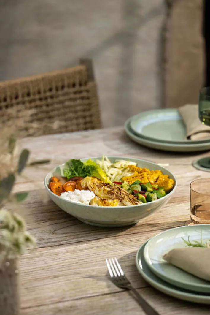 Die in Grün gehaltene Schale PERLEMOR ALGA, die eine Größe von 26 cm aufweist und aus der like.-Serie des Herstellers Villeroy & Boch stammt, kann sowohl optisch als auch praktisch überzeugen.