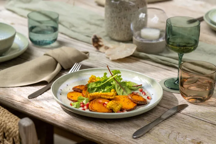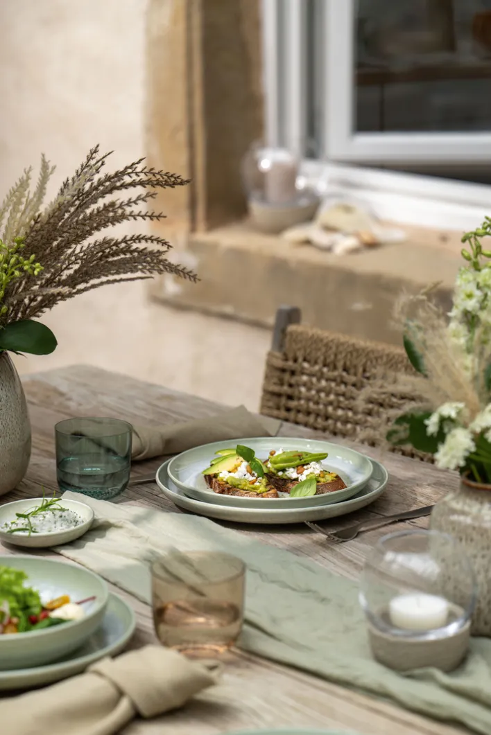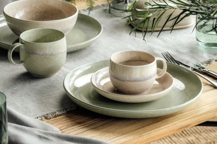 Der Teller ist glasiert, was ihm einen schönen Glanz verleiht. Vom Stil her wird er dem Boho zugeordnet, der sich unter anderem durch schicke Erdfarben auszeichnet. Bei diesem Geschirr, zu dem weitere Teile gehören, sind die Töne nicht klar getrennt, was ausgesprochen charmant aussieht. Von einem solchen Teller wird gern gegessen, wobei die Wahl zwischen Brotzeit oder zahlreichen warmen Speisen fällt. So ist er vielfältig einsetzbar.