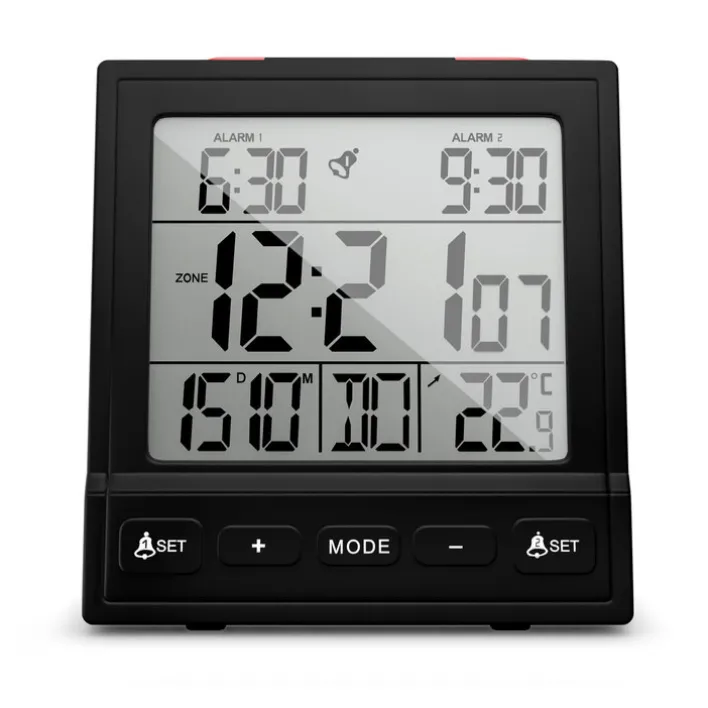 Das Gehäuse des Funkweckers besteht aus hochwertigem Kunststoff. Für die Anzeigen ist der Wecker mit einem hochwertigen Display ausgestattet. Die Einstellung der verschiedenen Funktionen erfolgt vollautomatisch. Der digitale Funkwecker funktioniert mit zwei 1,5V Batterien vom Typ AAA.