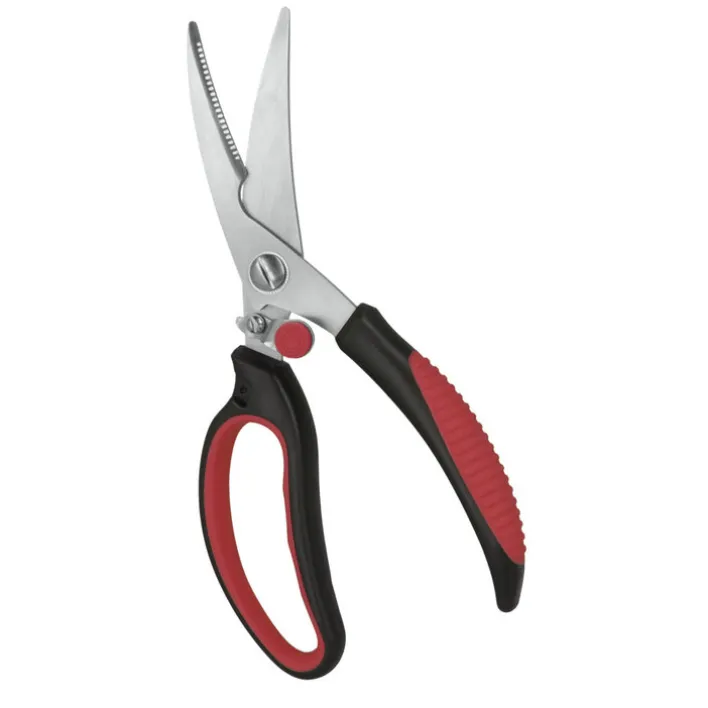 Die scharfe Geflügel- und Allzweckschere durchtrennt Fleisch und Knochen mit Leichtigkeit. Die gezahnte, stabile Klingenschneide ist leicht gebogen und dadurch perfekt für die Portionierung von Geflügel geeignet. Dabei spielt es keine Rolle, ob das Fleisch noch roh oder bereits zubereitet ist. So können Hähnchenschenkel und andere Stücke bequem zubereitet oder serviert werden. Auch das Halbieren eines Grill-Hähnchens geht kinderleicht. Die Geflügel- und Allzweckschere wird auch gerne als Pizzaschere genutzt und dient zum Zerschneiden der Verschnürung von Bratenstücken. Ein Sicherheitsverschluss sorgt für eine sichere Aufbewahrung ohne Verletzungsgefahr.