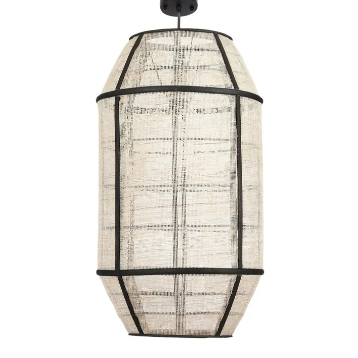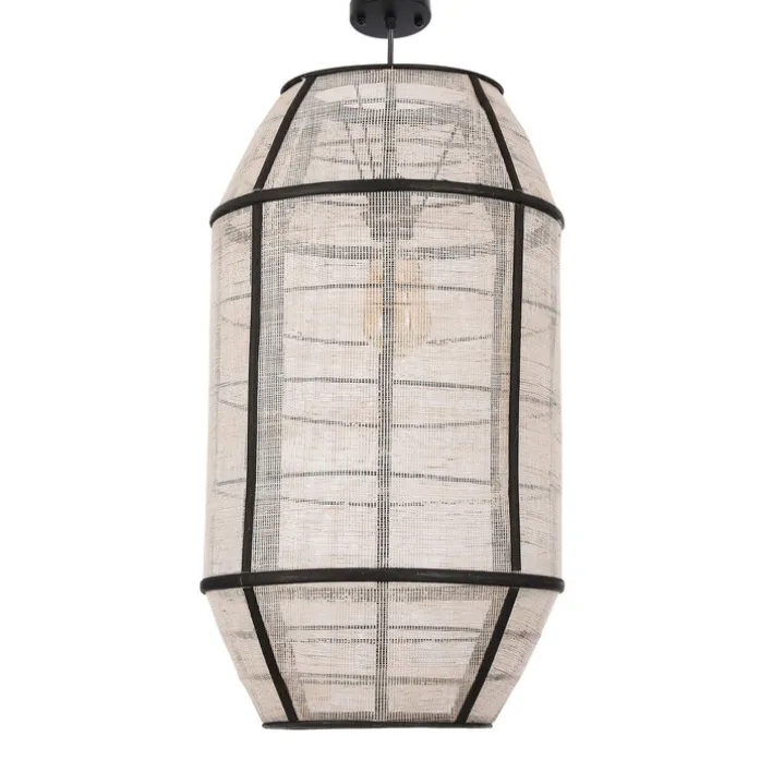 Die Pendelleuchte PELLA besticht mit ihrem ovalen Design mit einem Korpus aus schwarzem Metall und einem Schirm aus der beigem Naturfaser Flachs/Leinen. Die Lampe misst 58 cm Höhe bei einer maximalen Höhe von 70 – 180 cm und bringt einen Durchmesser von 32 cm bei 1 kg Gewicht mit.