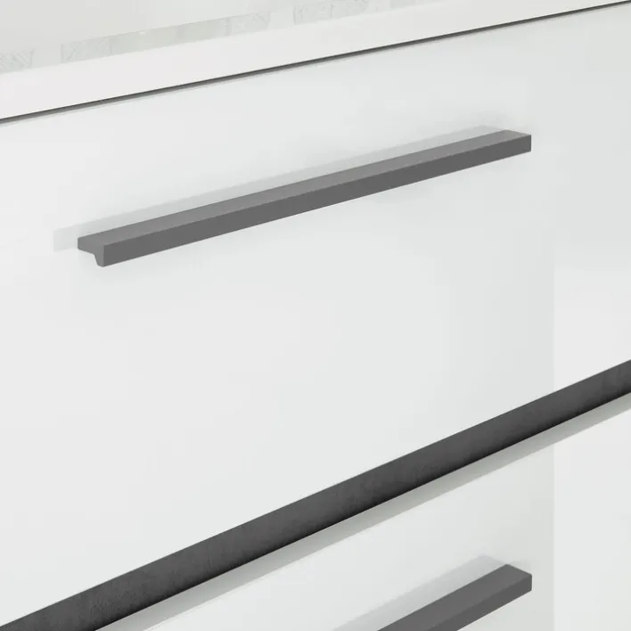 Das Musterring Highboard RIMINI in Schneeweiß und Dunkelgrau bietet ein modernes Design, eine erstklassige Qualität und eine hohe Funktionalität.
