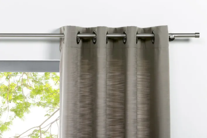Der my deco Ösenschal BALANCE in Cappuccino misst 135 x 245 cm und ist aus pflegeleichter Kunstfaser. Mit den dekorativen Ösen und dem Leinen-Look passt er zu vielen Gardinenstangen.
