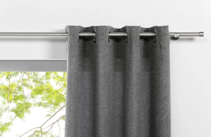 Einfach aufhängen, fertig: Der my deco Ösenvorhang CHALET in Grau misst 135 x 300 cm. Er ist aus pflegeleichten Synthetikfasern, die den perfekten Sichtschutz bieten und den Raum leicht abdunkeln.