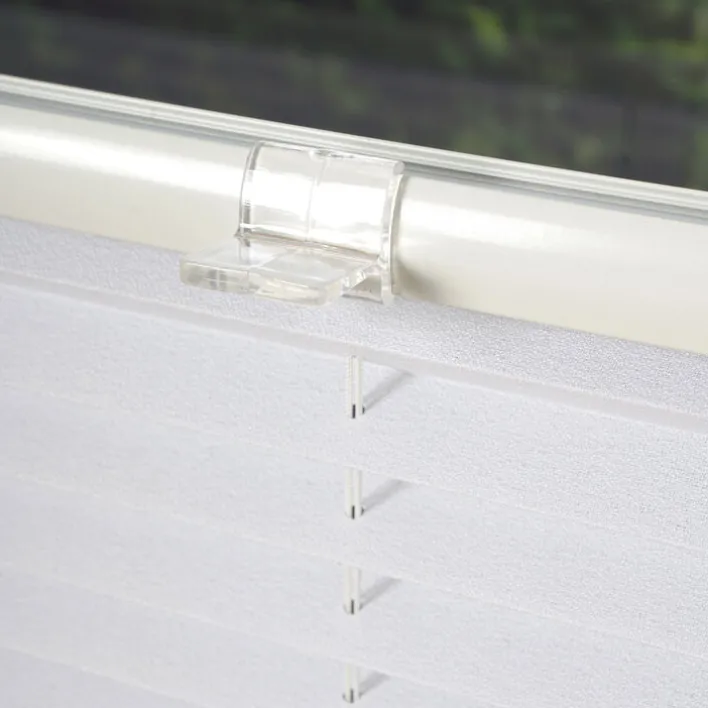 Das weiße, 90 x 130 cm große Plissee kann ohne Bohren montiert werden und bringt das erforderliche Befestigungsmaterial gleich mit. Es lässt sich auf beiden Seiten individuell verstellen und überzeugt mit einer sehr schönen und leichten Optik.