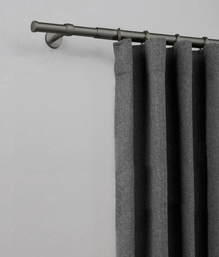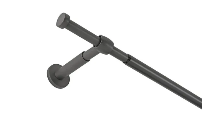 Voll im Trend: Die my deco Teleskopgarnitur CAP NOBLE ist von 160-280 cm ausziehbar. Sie ist aus Metall im Farbton Eisen-Brush, die Gardinenstange hat einen Durchmesser von 19 mm.