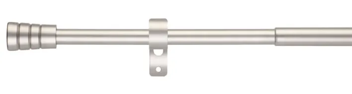 Im Set enthalten sind neben der Teleskopstange drei Träger und die konisch geformten Endknöpfe mit den eingeschnittenen Rillen. Die moderne Optik wirkt geometrisch, passt zu grafischen Einrichtungsstilen wie auch ins Industrial Design. Sogar minimalistisch eingerichtete Wohn- und Schlafräume profitieren von der praktischen Teleskopstange, die für junges Wohnen im urbanen Umfeld und unproblematische Umzüge steht. Breite Fensterfronten, Balkon- und Terrassentüren – bei einer flexiblen Breite von 160 bis 280 Zentimetern ist das alles kein Problem.