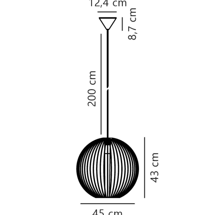 Die Nordlux Retrofit Pendelleuchte BERONI hat einen Durchmesser von 45 cm und eine Höhe von 43 cm. Die Länge der Zuleitung beträgt 200 cm. Die Hängelampe ist aus schwarzem Metall und wiegt 1,65 kg.
