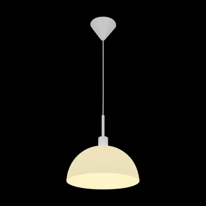 Der Lampenschirm der Pendelleuchte Ellen ist aus Glas gefertigt. Die Oberflächen sind glatt und pflegeleicht. Die Halterung ist aus Metall hergestellt und lackiert. Für verschiedene Leuchtmittel bis zu 40 Watt ist die Leuchte mit einer E27-Fassung ausgestattet.