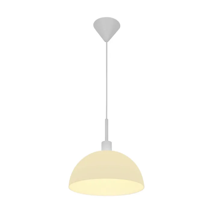 Die 1-flammige Retrofit Pendelleuchte ELLEN von Nordlux hat einen Durchmesser von 30 cm und präsentiert sich elegant mit einem Schirm im Farbton Opal weiß. Durch das tolle Retro-Design ist die Leuchte ein dekorativer Blickfang und passt in Wohn- und Esszimmer. Auch über dem Küchentisch macht sie eine gute Figur. Die Pendelleuchte ist die perfekte Ausleuchtung für runde Tische und schafft eine angenehme Atmosphäre.