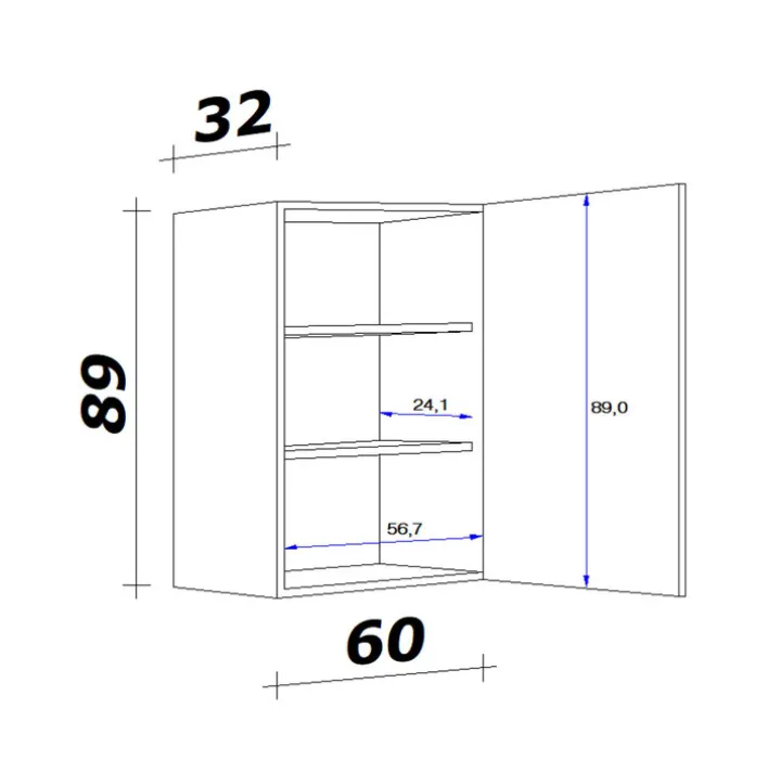 Breite: 60 cmHöhe: 89 cmTiefe/Ausladung: 32 cm