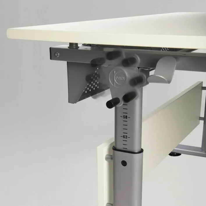 Die kleinen werden so schnell groß! Aber dafür gibt es schließlich verstellbare Kinderschreibtische. Mit der Zentimeterangabe und einer Kurbel an der Seite, kann die erwünschte Höhe schnell und bequem eingestellt werden. Mit der weißen und silbernen Farbe lässt sich der Schreibtisch sowohl einem Mädchen- als auch einem Jungenzimmer anpassen. Für eine bequemere Haltung kann die Tischplatte auch Schräg gestellt werden. Die Ablageschale und das Lineal am Tischrand sowie die Abrutschleiste direkt darunter bieten weitere Annehmlichkeiten. Durch den Haken für die Schultasche findet auch diese ihren geordneten Platz im Kinderzimmer.