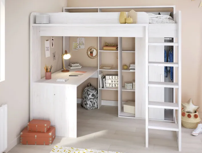Das Parisot Hochbett HIGHER 1 in Weiß ist 189 cm hoch. Die Länge beträgt 206 cm, die Breite 138 cm. Der integrierte Lattenrost kann individuell mit einer Matratze von 90 x 200 cm ergänzt werden.
