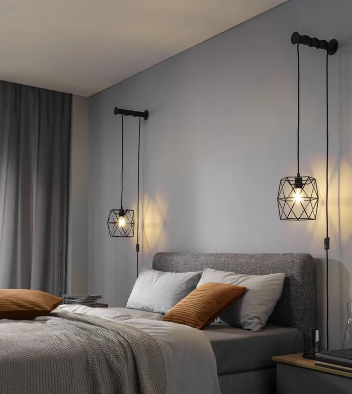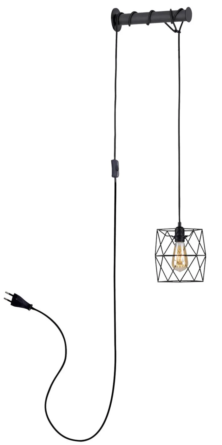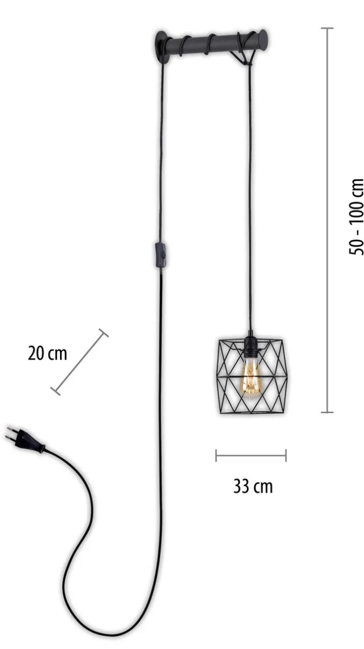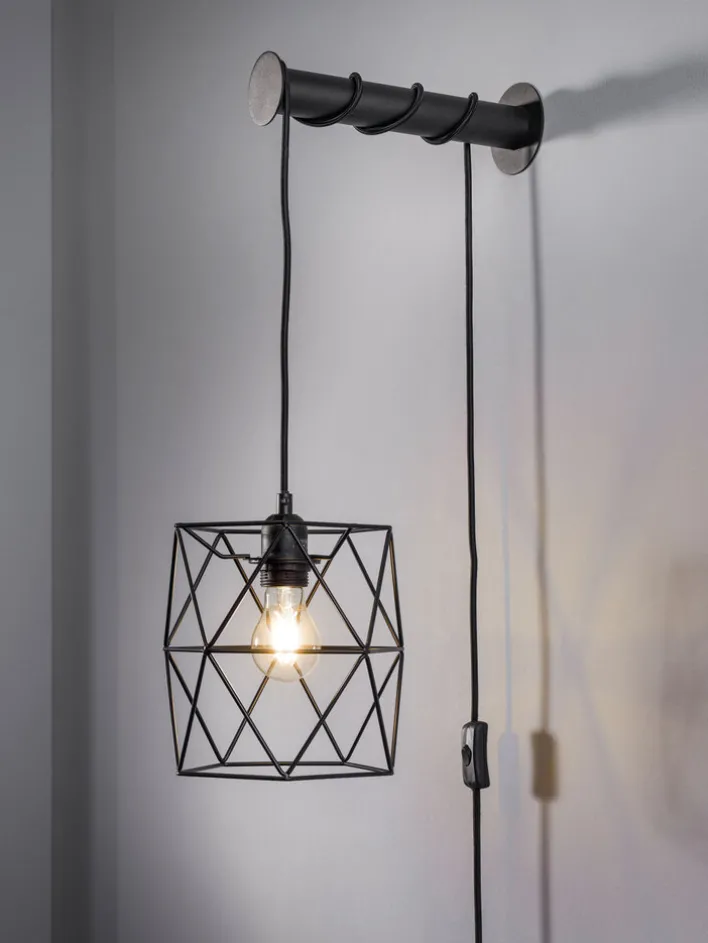 Durch das schwarze Metall und den offenen Lampenschirm, der das frei wählbare Leuchtmittel sichtbar macht, passt diese Wandleuchte perfekt zum Industrial-Einrichtungsstil. Ein weiteres Detail, das für den Industrie-Stil spricht, ist, dass das Kabel mit Schnurschalter frei an der Wand hängt. Das einzusetzende Leuchtmittel darf maximal 40 Watt verbrauchen.