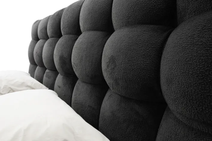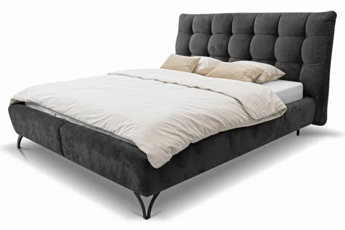 Das 180 x 200 cm große ERATO Polsterbett in Graphit schafft eine super Grundlage für eine erholsame Nacht. Selbst wenn es gerade aber nicht in Benutzung ist, ist das Bett zweifelsfrei ein Hingucker. Allen voran aufgrund der leicht angeschrägten und stark gesteppten Kopfpartie, die dem Bettdesign zusätzliche Tiefe und einen modernen Akzent verleiht.