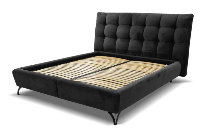 Ebenfalls ein Blickfang sind beim Polsterbett ERATO die filigranen Standfüße. Komplett gebogen geformt, verleihen sie dem Bett eine filigrane Raumwirkung. Bettkästen sind bei dem Polsterbett ebenfalls enthalten und kreieren damit selbst in kleineren Schlafzimmern zusätzlichen Stauraum. Lattenroste sind hier schon inklusive, bei der Wahl der Matratze bleiben unsere Kunden indes flexibel.