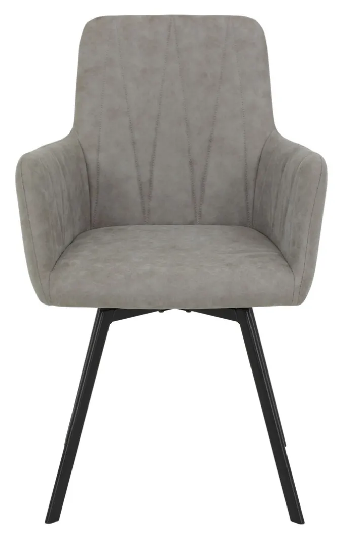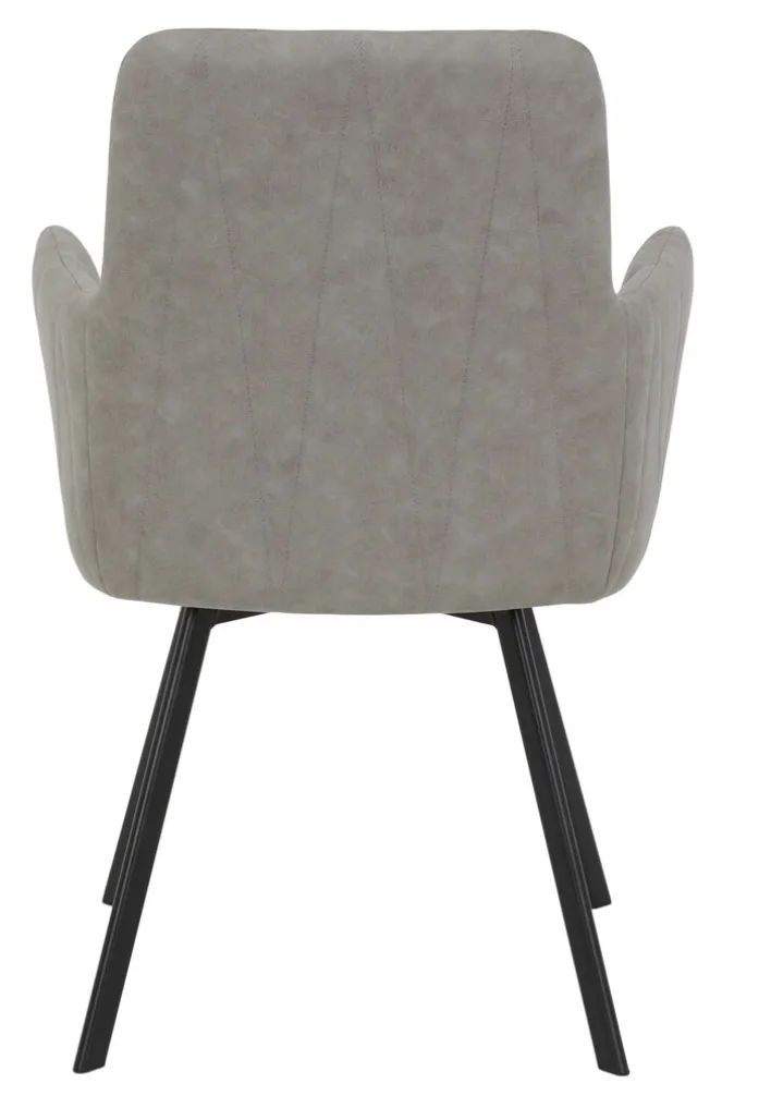 Der graufarbige Esszimmerstuhl LAURI kombiniert ein schwarz pulverbeschichtetes Vierfußgestell mit eine angenehm fest gepolsterte Sitzschale mit festen Armlehnen und einem weichen Textilbezug. Mit den Steppnähten an Rückenlehen und Außenseite des Stuhls wird das edle Design des Esszimmerstuhls gekonnt unterstrichen. Durch das elegante Design lässt sich der Esszimmerstuhl mit modernen und klassischen Esszimmermöbeln kombinieren und er ist im Esszimmer sowie im offenen Wohn-Essbereich ein attraktiver Blickfang. Punkten kann der Esszimmerstuhl außerdem mit einer maximalen Belastbarkeit von 120 kg.