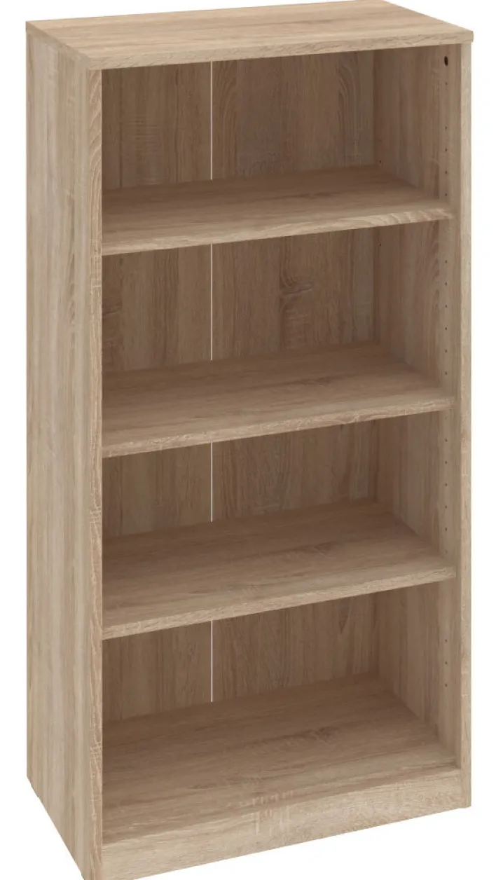Das Regal begeistert mit einer klaren, sehr minimalistischen Formgebung, sodass es sich vielseitig kombinieren lässt. Der Korpus und die drei Einlegeböden bestehen aus einer hochwertigen Holznachbildung. Die macht das Regal äußerst robust. Sie ist mit einem stilvollen Eiche Sägerau-Dekor verziert und sieht so sehr natürlich aus. Das Regal bietet sich hervorragend für das Wohn- oder das Arbeitszimmer an. Doch natürlich kann es auch gut in einem geräumigen Flur platziert werden.die Kanten des Regals sind mit einem Holzdekor foliert und daher robust und strapazierfähig.
