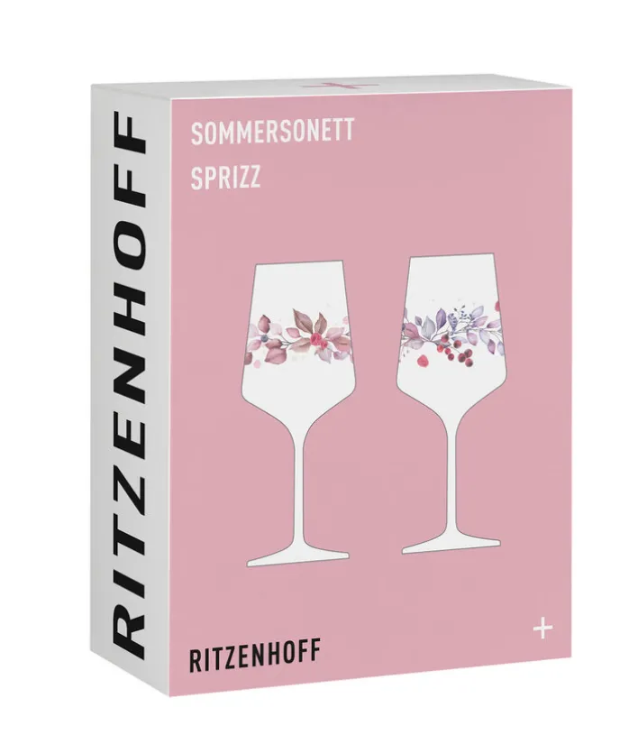 Für passende Trinkgläser zum Aperitif ist das gläserne Duo SOMMERSONETT SPRIZZ F23 aus dem Hause RITZENHOFF eine ideale Wahl. Die 200 g schweren Kristallgläser fassen jeweils 544 ml und kommen im praktischen 2er Set. Sie zeigen ein sommerliches Motiv der Künstlerin Carolin Oliveira in verschiedenen Rosatönen und eignen sich nach dem Trinkgenuss für die Reinigung in der Spülmaschine.