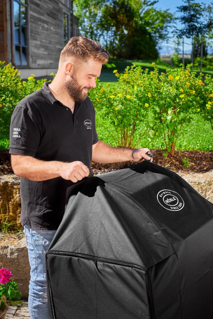 Die RÖSLE Schutzhülle VIDERO ist eine wetterfeste Abdeckhaube für die VIDERO Grills G4 bzw. G4-S. Sie besteht aus schwarzem Polyester mit einer Polyurethan (PU)-Beschichtung.