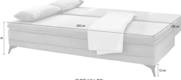 Anzahl Bettkästen inklusive: 1 Stk.Anzahl Zierkissen inklusive: 1Anzahl Lendenkissen inklusive: 2Anzahl Rückenpolster inklusive: 2