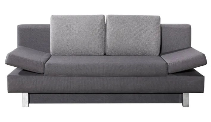 Das moderne Schlafsofa TINO hat eine Breite von etwa 200 cm und ist das ideale Schlaf- und Sitzmöbel für den modern eingerichteten Wohn- oder Gästebereich. Durch das trendige Design mit chromfarbigen Füßen aus Metall und die dunkelgrauen Polster ist das 3-Sitzer-Sofa ein Blickfang und problemlos in bereits bestehende Einrichtungen integrierbar. Für eine angenehme Sitz- und Liegeposition sorgen weiche Polster und ein hochwertiger Federkern. Für Decken und Kissen steht ein Bettkasten zur Verfügung.