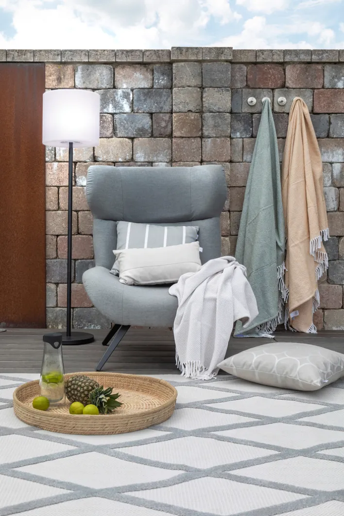 Die mobile Akku LED Stehlampe MINA ist eine moderne Leuchte aus der SCHÖNER WOHNEN-Kollektion. Durch die schönen Oberflächen im Farbton sandschwarz fällt die 150 cm hohe Leuchte sofort ins Auge und schafft zahlreiche Kombinationsmöglichkeiten. Sie passt neben einen Fernsehsessel und ist auch für eine Leseecke im Wohnzimmer geeignet. Im Garten, auf der Terrasse oder auf dem großen Balkon kommt die Solarlampe ebenfalls zum Einsatz. Die Stehlampe schafft mit einem RGBW Lichtfarbwechsler eine tolle Atmosphäre und ist mit einer Fernbedienung steuerbar.