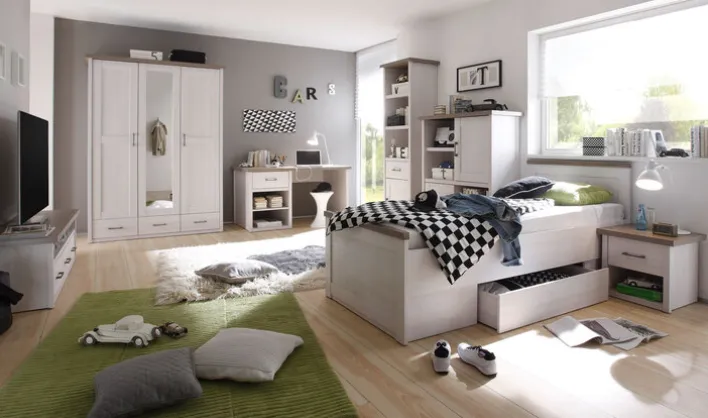 Der Schreibtisch aus der Serie LUCA vereint Funktionalität und ansprechendes Design im Landhausstil. Mit einer Breite von 141 cm, einer Höhe von 77 cm und einer Tiefe von 81 cm bietet er ausreichend Platz für Ihre Arbeitsutensilien. Der Tisch besteht aus einer hochwertigen Holznachbildung und präsentiert sich in einem eleganten Pinie weiß mit Trüffel-Akzenten, was ihm eine warme und einladende Optik verleiht.