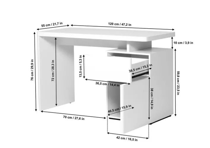 Der Schreibtisch wurde als Arbeitsplatz für vielfältige Bürotätigkeiten entworfen. Er eignet sich für alle klassischen Schreibarbeiten und bietet genügend Platz für Ihr Tablet