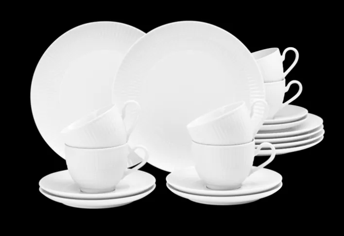 Die Traditionsmarke Seltmann Weiden stellt mit dem Kaffeeservice AMINA eine attraktive Option für eine schön gedeckte Kaffeetafel vor. Seine klaren Formen und das Rillenrelief machen das Geschirr zu einem Klassiker. Das Service besteht aus je sechs Kaffeetassen, Untertassen und Desserttellern. Es passt gut in ein Landhausstil-Ambiente oder in eine typische norddeutsche Küche. Das Geschirr lässt sich außer zum Servieren auch für die Zubereitung verwenden, denn es ist sowohl mikrowellengeeignet als auch ofenfest.