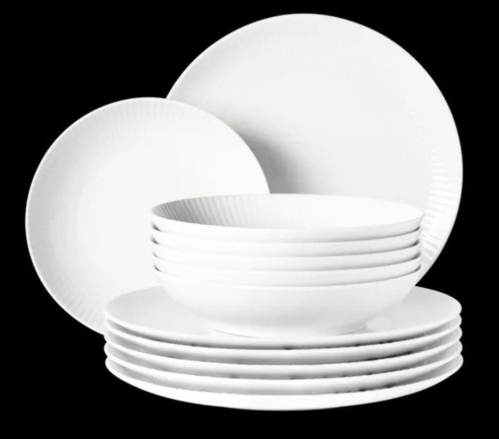 Der deutsche Markenproduzent Seltmann Weiden präsentiert mit diesem zwölfteiligen Tafelservice AMINA Speise- und Suppenteller, die qualitativ und optisch hohen Ansprüchen genügen. Die markante Rillenstruktur verleiht den Porzellantellern einen einzigartigen Touch, zugleich lassen sie sich dank schlichtem Weiß vielseitig einsetzen. Ob Mittagessen im Familienkreis oder Festessen an Weihnachten: Die eleganten Teller passen zu jedem Anlass. Als praktisch erweist sich, dass sich das Tafelservice für die Mikrowelle eignet und spülmaschinenfest ist. Das erhöht die Flexibilität und vereinfacht die Reinigung.