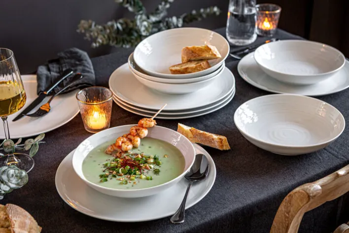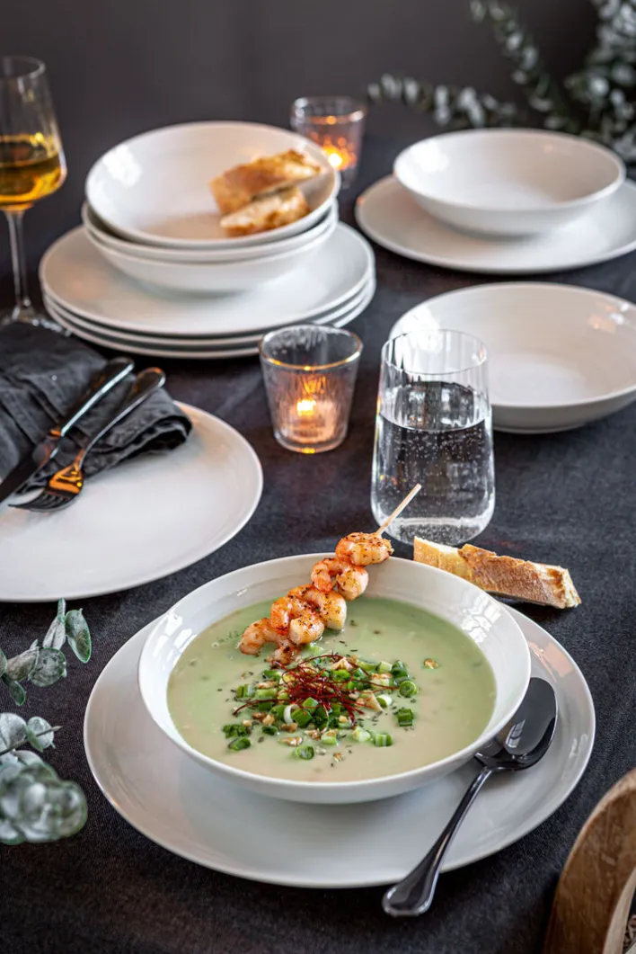 Das 12-teilige Tafelservice – in Weiß und mit seiner charakteristisch geriffelten Optik designt – ist Teil der TERRA-Kollektion des international renommierten Markenherstellers Seltmann Weiden aus Deutschland. Made in Germany, kommen bei dem Tafelservice optische Exklusivität und purer Minimalismus sowie funktionale Expertise aus jahrzehntelanger Traditionsfertigung zusammen. Das Tafelservice aus feinem, aber robusten Porzellan ist nicht nur spülmaschinenfest, sondern auch backofenfest und kann sogar in der Mikrowelle ohne Materialbeeinträchtigungen zum Einsatz kommen.