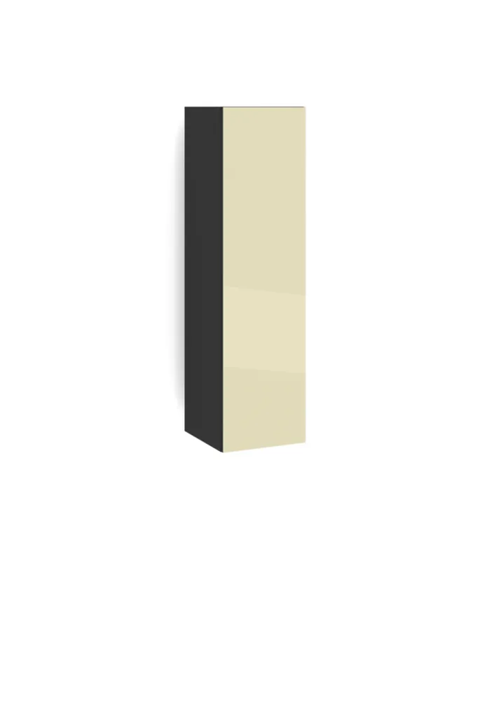 Der Hängeschrank aus der Serie RENO besticht durch sein modernes Design und die Kombination aus hochwertigen Materialien. Die Front in Kaschmir Lack verleiht dem Schrank eine elegante Hochglanzoptik, während die Seiten in einem matten Graphit Schwarz gehalten sind. Diese kontrastreiche Farbgebung sorgt für ein stilvolles Erscheinungsbild, das sich nahtlos in verschiedene Wohnstile einfügt.
