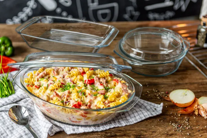 In dieser rund, backofengeeigneten Schüssel SIMAX mit einem flachen Glasdeckel bereiten Sie herrliche Aufläufe, Gemüse oder Fleisch zu. Die aus Borosilikatglas gefertigte Schüssel SIMAX hat ein Fassungsvermögen von circa einem Liter und der dazugehörige, flache Deckel von circa vierhundert Milliliter. Direkt vom Ofen auf den Tisch und zurück in den Kühlschrank oder der Spülmaschine. Kälte und Wärme im Wechsel können den Auflaufformen und Schüsseln nichts anhaben. Verschiedene Gerichte, Beilagen oder Zutaten bereiten Sie perfekt zu und servieren Sie farblich passend.