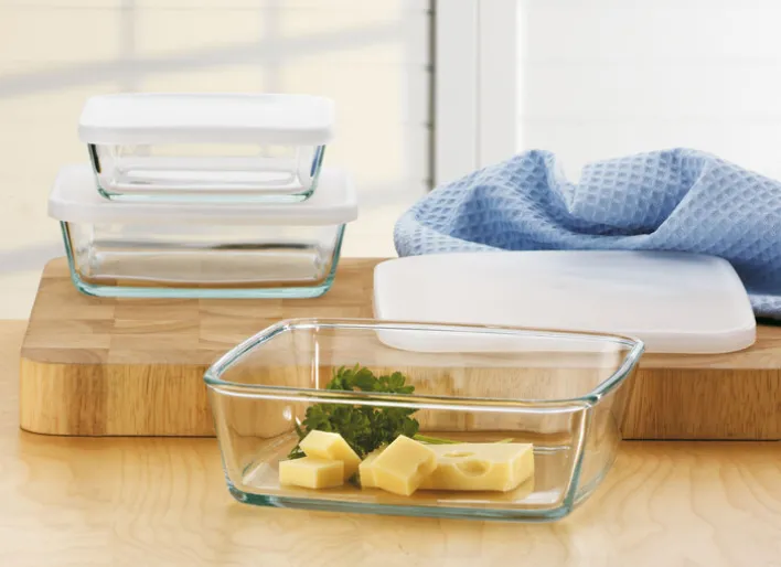 Der Vorratsbehälter besteht aus hochwertigem Borosilikat und hat eine rechteckige Form. Der weiße Deckel besteht aus Kunststoff und schließt dicht ab. Der Behälter bietet sich hervorragend zum Aufbewahren von bereits fertig gekochten Gerichten an. Doch auch um einen Nachtisch darin zu schichten, ist er hervorragend geeignet. Aufgrund der transparenten Oberfläche lässt sich der Inhalt schon von außen erkennen, was die Organisation in der Küche erleichtert. Darüber hinaus passt der Vorratsbehälter dank seines schlichten und zeitlosen Designs wunderbar in verschiedene Einrichtungsstile.