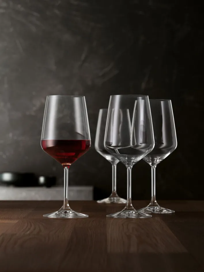 Das SPIEGELAU Rotweinglas STYLE aus Kristallglas hat ein Fassungsvermögen von 630 ml und kommt im praktischen 4er-Set in die Küche. Mit seinem eleganten, modernen Design macht es auch auf der Festtafel eine gute Figur, während die Form optimalen Rotweingenuss ermöglicht.