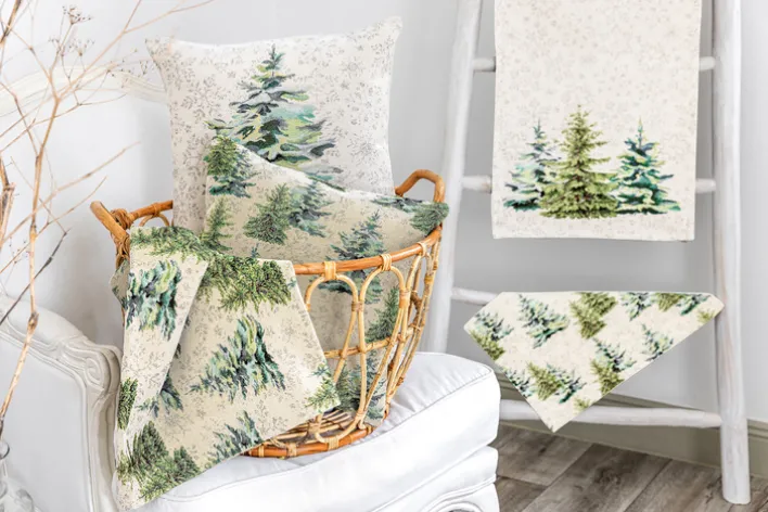 Kissenhüllen sind eine ebenso schöne wie einfache Möglichkeit, Räumlichkeiten zu dekorieren. Das winterliche Motiv der Kissenhülle NEOTERIC FOREST von SPRÜGEL passt sehr gut in ein Ambiente mit Naturtönen. Sie eignet sich dazu, Sitzgelegenheiten im Wohnzimmer zu verschönern. Auch im Schlafzimmer oder auf einer Sitzbank in Flur oder Küche kommt das Design hervorragend zur Geltung. Die Hülle aus Baumwolle und Polyester ist mit einem praktischen Reißverschluss ausgestattet und lässt sich bei 30 °C waschen.