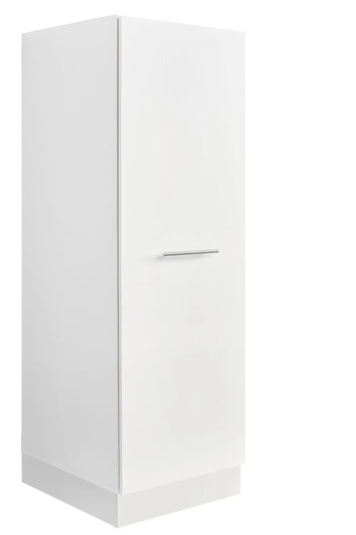 Dieser Schrank hat eine Breite von 50 cm, eine Höhe von 162 cm sowie eine Tiefe von 67,5 cm auf. Er ist mit Füßen ausgestattet, die höhenverstellbar sind und besitzt eine Tür, hinter der sich insgesamt drei Einlegeböden befinden. Somit bietet er nicht nur viel Stauraum, sondern die Dinge lassen sich innerhalb des Schrankes auch noch einmal aufteilen, was für zusätzliche Ordnung sorgt. Damit die Tür sich einfach öffnen beziehungsweise schließen lässt, beherbergt sie einen Metallgriff; damit das Ganze leise von sich geht, wurde der Schrank mit einer Soft-Close-Funktion versehen.