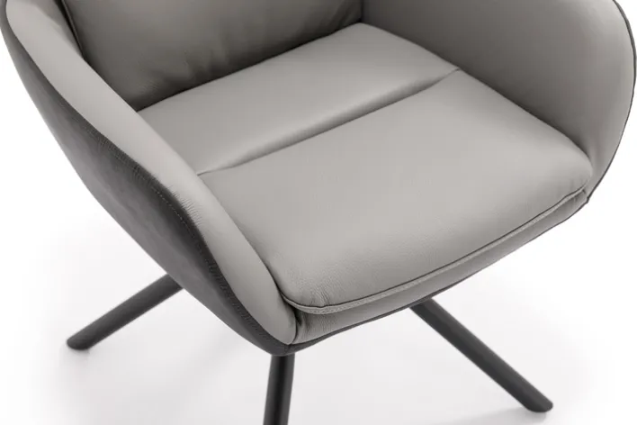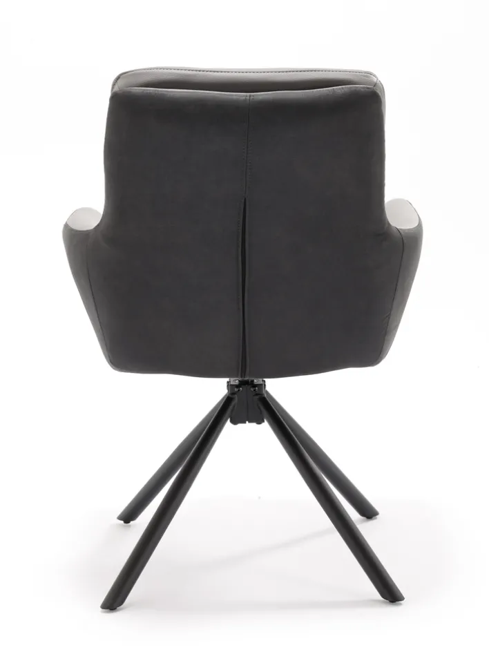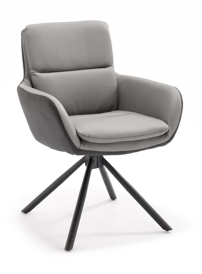 Der Armlehnstuhl NOVALEE in Anthrazit/Leder Grau im skandinavischen Design besticht mit seiner formschönen Silhouette ebenso wie mit den großzügig und schwungvoll geformten Armlehnen, die dem Stuhl eine fließende Wirkung verleihen, wie sie insbesondere für den skandinavischen Stil charakteristisch ist. Durch die Standfüße entsteht zugleich ein schöner Hell-/Dunkel-Kontrast.