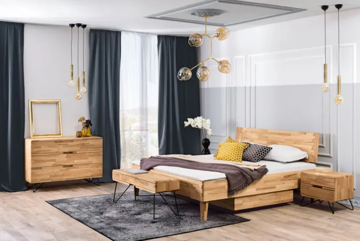In diesem Bett werden Sie viele traumhafte Stunden verbringen. Es bietet ausreichend Schlafplatz für zwei Personen. Die natürliche Holzoberfläche wirkt beruhigend und entspannend Genießen Sie das glückliche Gefühl eines Sonntagmorgens. Lesen Sie Zeitung im Bett oder frühstücken Sie sogar dort.
