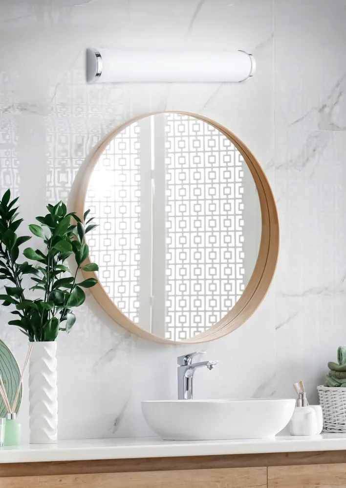 Die 2-flammige Wandlampe wird als Spiegelleuchte eingesetzt. Sie strahlt durch den weißen Schirm und die satinierte Oberflächenbeschichtung ein helles, aber gedämpftes Licht im Bad aus. Sie besteht aus hochwertigem Glas und ist an den Seiten in glänzendem Chrom gefasst. Die Höhe der TRIO LED Wandlampe XAVI 30 cm beträgt 8,3 cm. Sie wird ohne Leuchtmittel geliefert, wir empfehlen E14 mit maximal 40 Watt.