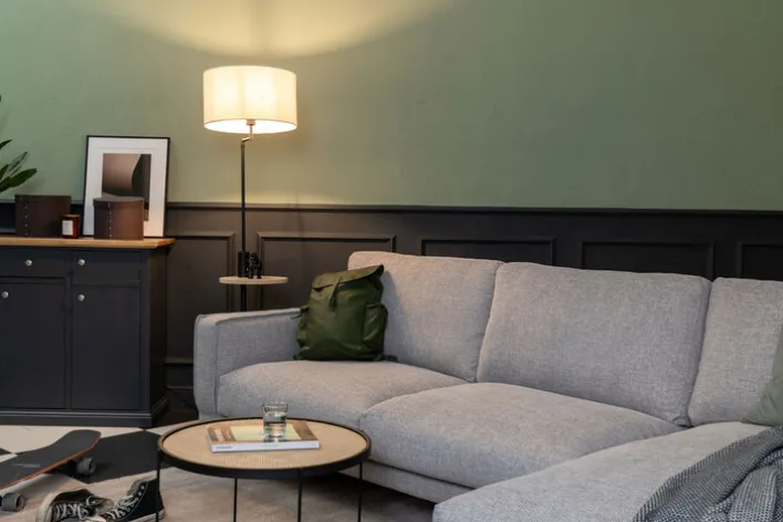 Die Retrofit Stehlampe CLAAS von der Marke Trio Leuchten ist 160 Zentimeter hoch und mit einem Tisch und einem USB-Anschluss ausgestattet. Mit ihrem grauen Leuchtenschirm spendet sie jederzeit ein angenehmes Licht. Ein modernes Design, eine hochwertige Verarbeitung und zahlreiche praktische Funktionen machen die Stehlampe CLAAS zu einer idealen Lichtquelle in jedem Wohnbereich. Der angewinkelte Leuchtenarm ist in eine gewünschte Richtung schwenkbar und lässt sich variabel verstellen. Der Lampenfuß besteht aus Metall in der Farbe Schwarz matt. Die Stehlampe verfügt ferner über ein rundes Tischchen, welches als Ablagefläche für eine Lesebrille oder ein Mobiltelefon dient. Direkt über der Ablage befindet sich am Metallbein der Stehlampe ein USB-Anschluss, mit dem Sie Ihr Handy, eine Smart Watch oder ein Tablett bequem aufladen können. Mit einem Schalter über der USB-Schnittstelle wird die Stehlampe einfach ein- und ausgeschaltet. Als Lichtquelle lassen sich 60 Watt Retrofit oder 12 Watt LED Leuchtmittel mit der Fassung E27 verwenden. #porta #portamöbel #naturtyp #meinporta #coffeeculture