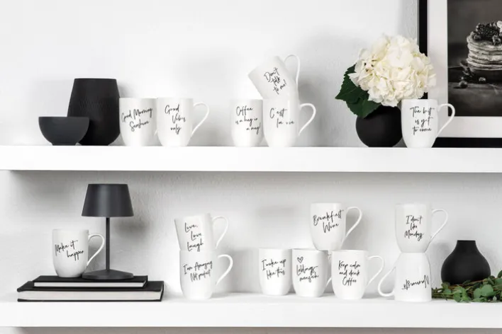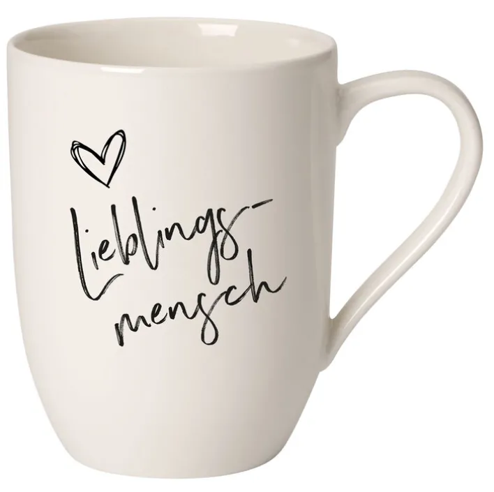 Der Villeroy & Boch Kaffeebecher STATEMENT LIEBLINGSMENSCH hat ein Fassungsvermögen von 340 ml und präsentiert sich in einem modernen Design in Schwarz und Weiß.
