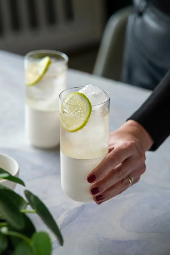 Die Kombination aus hochwertigem Kristallglas und mattweißer Veredelung macht das 15 cm hohe Longdrinkglas MANUFACTURE ROCK BLANC zu einer stilsicheren Wahl für jede Cocktailparty.