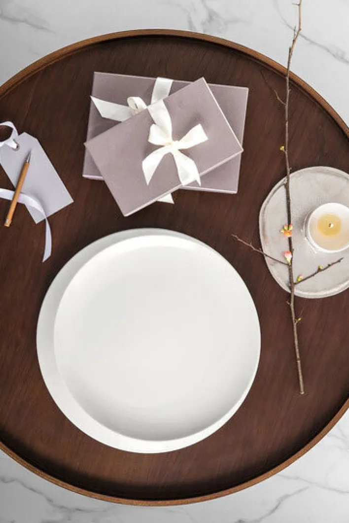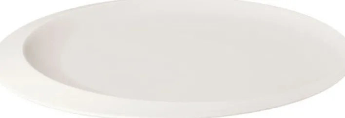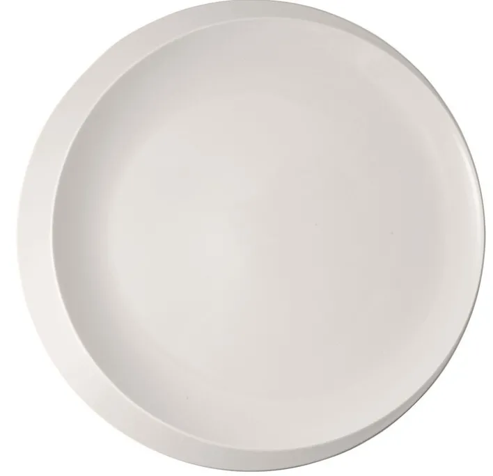 Die weiße Servierplatte NEW MOON von Villeroy & Boch hat einen Durchmesser von 36,8 cm und eine Höhe von 3 cm. Das hochwertige Porzellan ist mikrowellenfest und lässt sich einfach in der Spülmaschine reinigen.