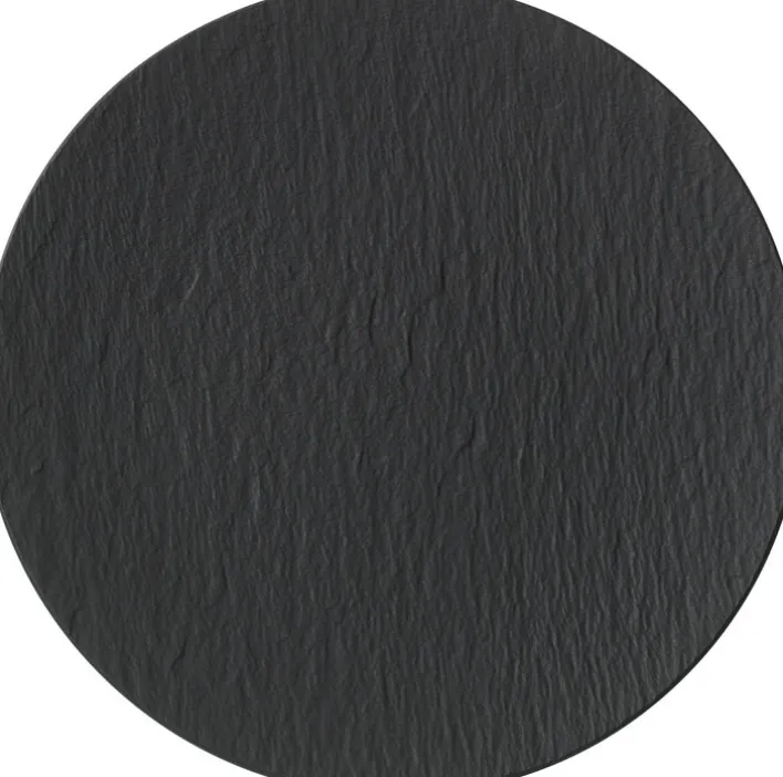 Dieser ausgefallene Teller MANUFACTURE ROCK in der Farbe Schwarzgrau/Schieferstruktur ist aus hochwertigem Premium Porzellan, etwa zweiunddreißig Zentimeter groß und somit der ideale Pizzateller.
